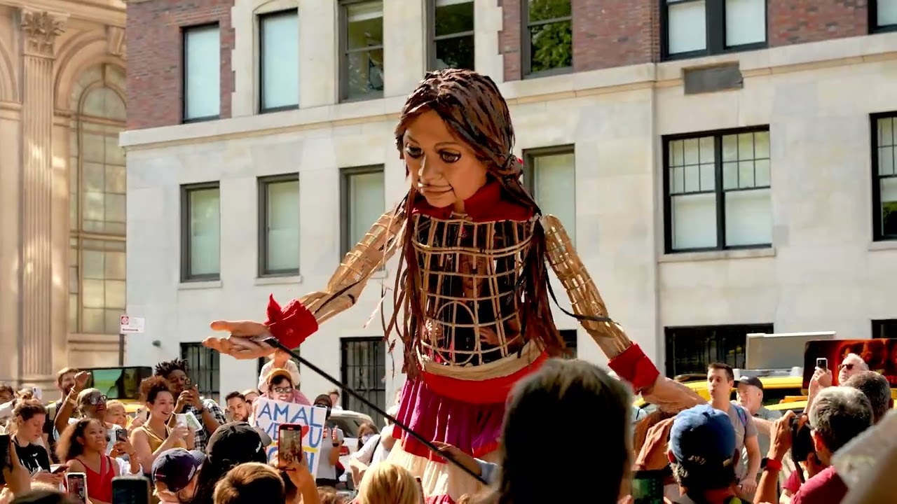 Little Amal is a 10-year-old Syrian girl from a small village near Aleppo, a refugee and unaccompanied minor, who’s traveled over 9,000 kilometers over the last 15 months, hoping to reunite with her mother.